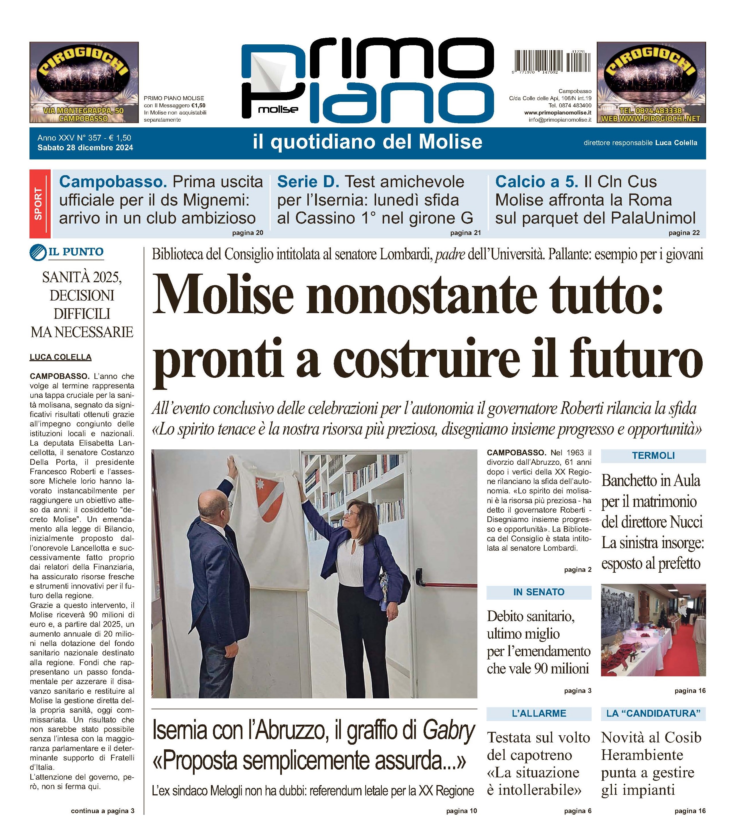 – 61 anni e non sentirli, la sfida del Molise per l’autonomia - 27/12/2024