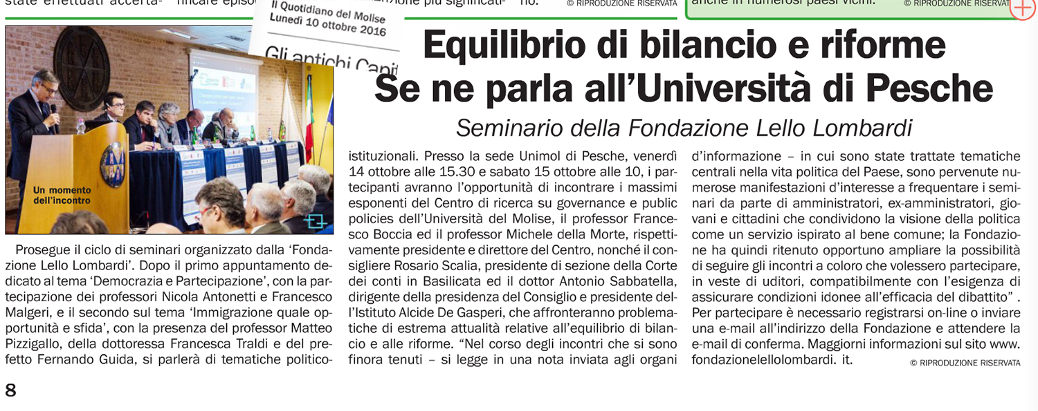 - Riforme e bilanci: esperti a confronto a Pesche – 9/10/2016